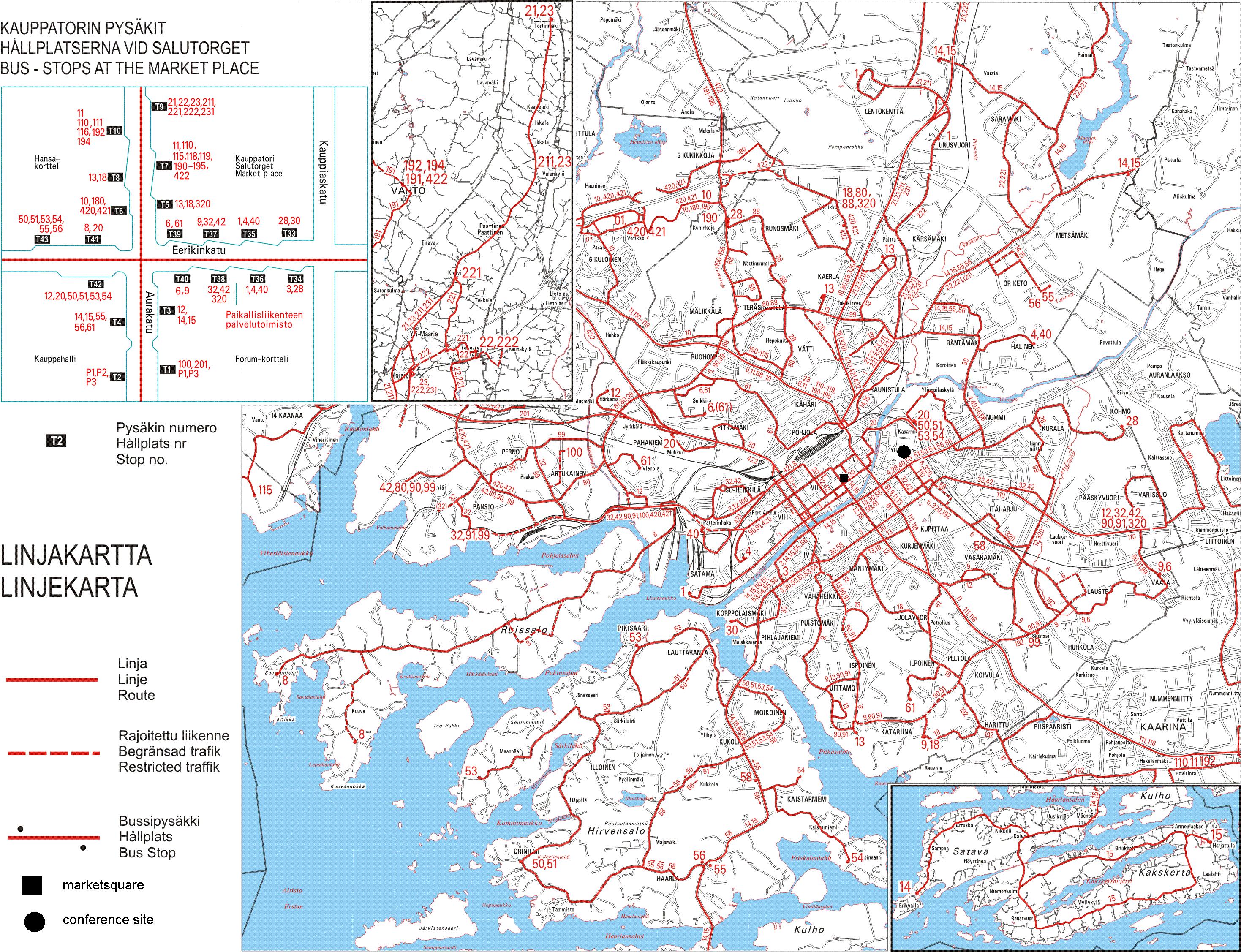 Second announcement 2009-03-04 First announcement 2008-11-18 Poster 2009-08-06 Abstracts presenting original contributions in complex analysis and related areas are being sought. Join the ROMFIN09 information posting list LAST MINUTE INFORMATIONThe easiest way to travel from the Helsinki airport to Turku is by bus. There are regular connections 24 hours each day. For more information see travel information page. We do our best to meet you at the Turku airport, the harbour or the bus station. We will be at the Turku airport on Sunday 16.8. at 16:50, 20:00 and 22:40 and on Monday 17.8. at 00:15. We will be at the Turku bus station on Sunday 16.8. at 17:10 and 20:40 and on Monday 17.8. at 2:50. There are also local busses from the Turku harbour and the Turku airport to Market Square. The bus number is 1. For hotel Seurahuone get off at bus stop number 13 (called Eskelinkatu) rigth after bus stop called Marina Palace. Here you can find a map of Turku and a map of local busses (zoomed version). In the case of emergency you may contact the organizers by phone +358 40 7318 470. The registration fee for the accompanying persons is 90 euros (including conference dinner and excursion to Naantali). On Wednesday you have an opportunity for a unique smoke sauna experience and swimming. Therefore, please bring swimming suit. The registration fee can be paid only in cash at the conference site (exact change is preferred). The registration will start on Sunday 18:00-21:00 at the conference cite (University of Turku, building LT II). Some refreshments and snacks are also served. Information about the conference proceedings can be found here. Due to recent cancellations there are a few gaps in the schedule. Therefore, we can give the opportunity for someone to deliver a presentation. If you are interested please inform us to romfin2009@lists.utu.fi. IMPORTANT DATES